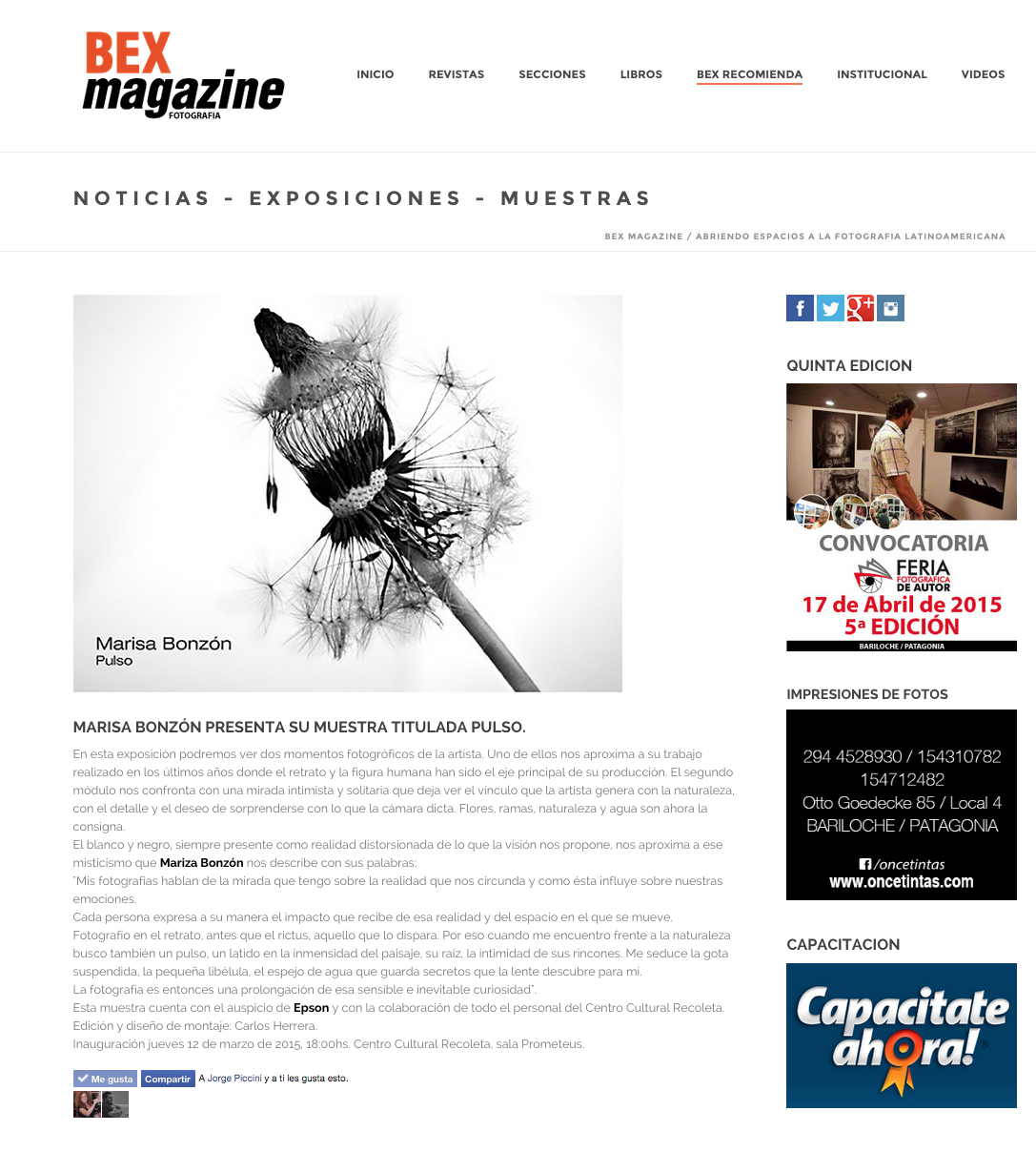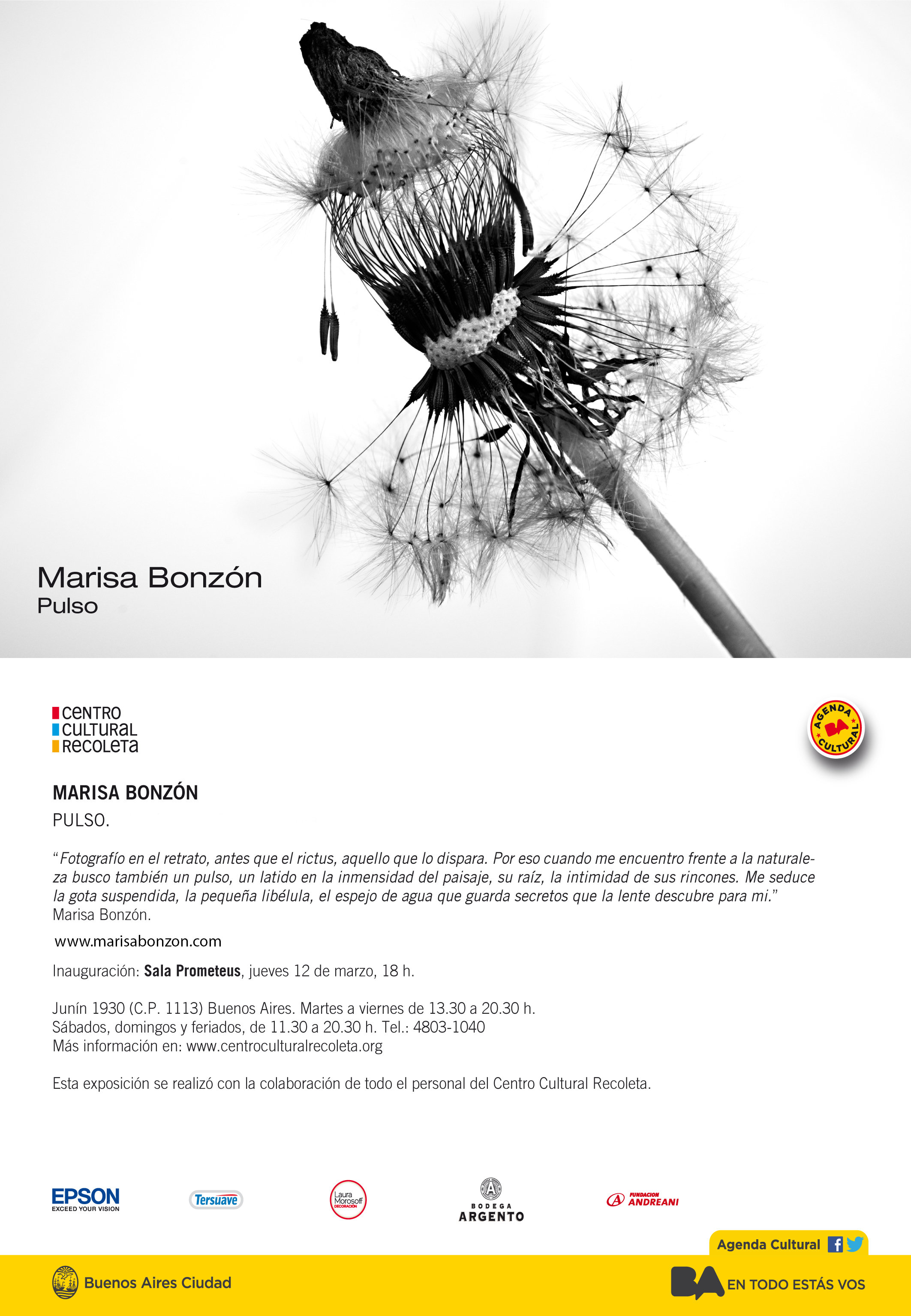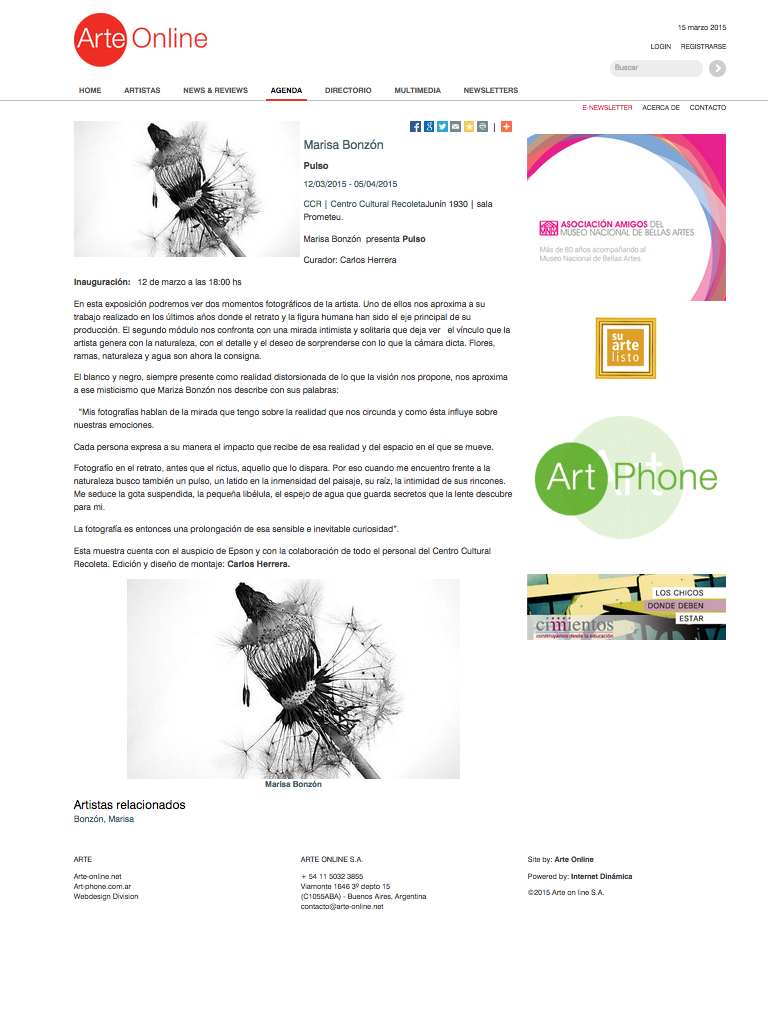 En los momentos en que pude estar recibí devoluciones tan sentidas y de gran sensibilidad, que decidí dejar un libro para que esto siga sucediendo aún en mi ausencia. Es algo muy personal, pero decido compartir algunos mensajes que me han dejado porque me emocionan profundamente , es tan importante saber que siente el expectador!! casi tanto como el instante adonde logro la toma! Es parte de la representación de la obra. GRACIAS por tan sensibles palabras, la mayoría no deja mails ni otros datos adonde pueda agradecer…ojalá algunos vean esto.